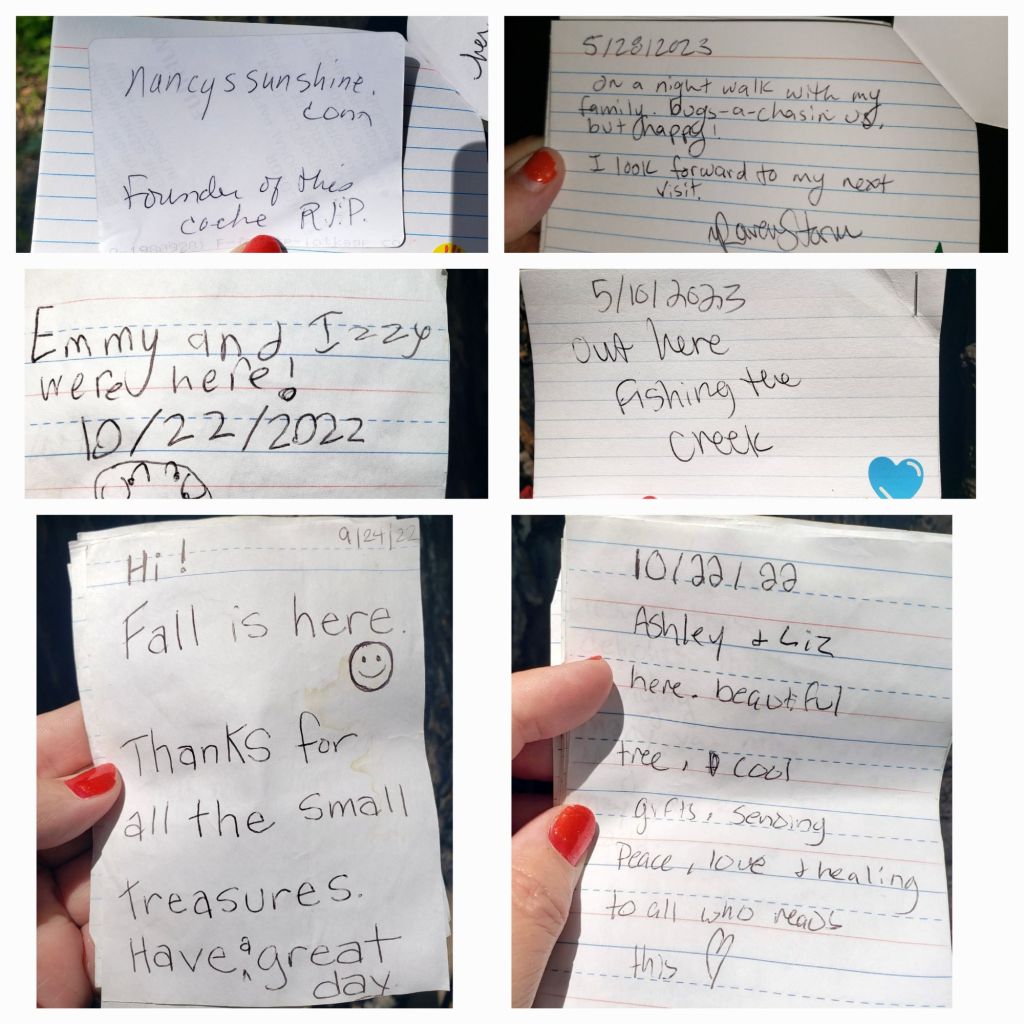 Some years back, Mom discovered a hollowed-out oak at her favorite park near home. Despite years of breakdown and decay at its base, sprigs of new growth stretched up towards the sky, reaching for the warmth and light of the sun, and that resonated with her soul. Mom began leaving little trinkets inside the cleft, and before long, others were leaving mementos and notes, too, and a beautiful rapport was established between strangers. I’m sure that no one knew how important it was to her that they were forming invisible bonds. For Mom, writing notes and letters was vital because she couldn’t spend time in the presence of other people due to her autoimmune disorder. She could take solo walks in nature, though, and here is where she found renewal.