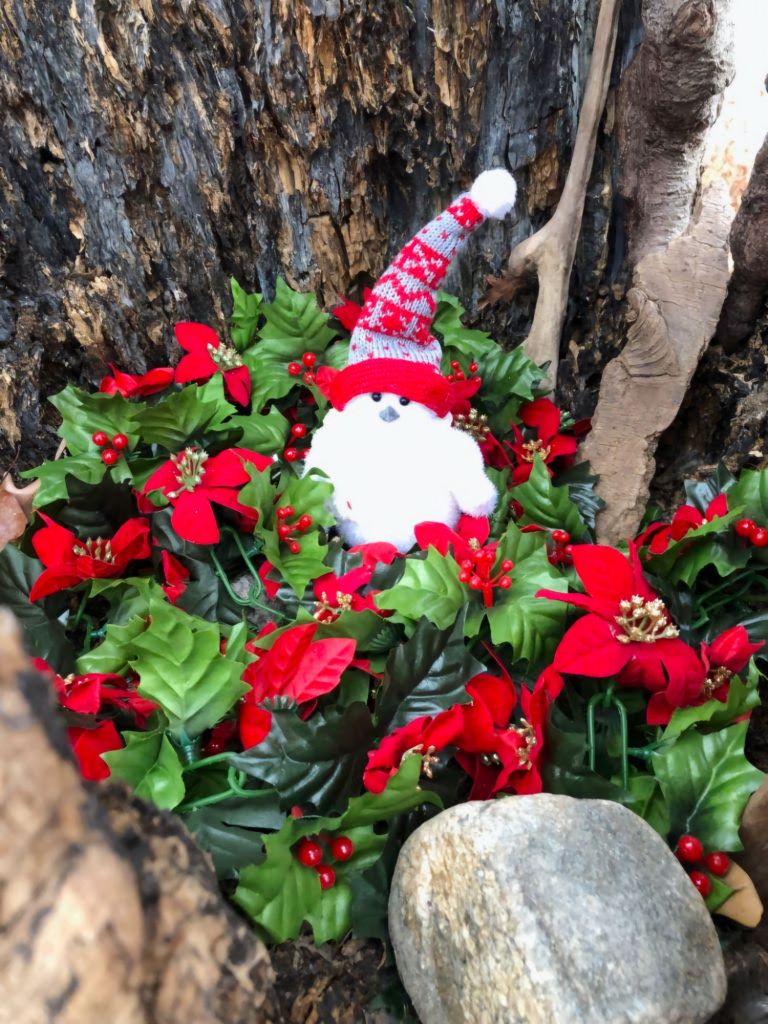 She sent me pictures of her handiwork via text but never said exactly where the tree was located in the 84-acre wooded park. This was the picture she sent to me in December 2022, during her final outing when she visited the tree for the last time and decorated it for the yuletide.